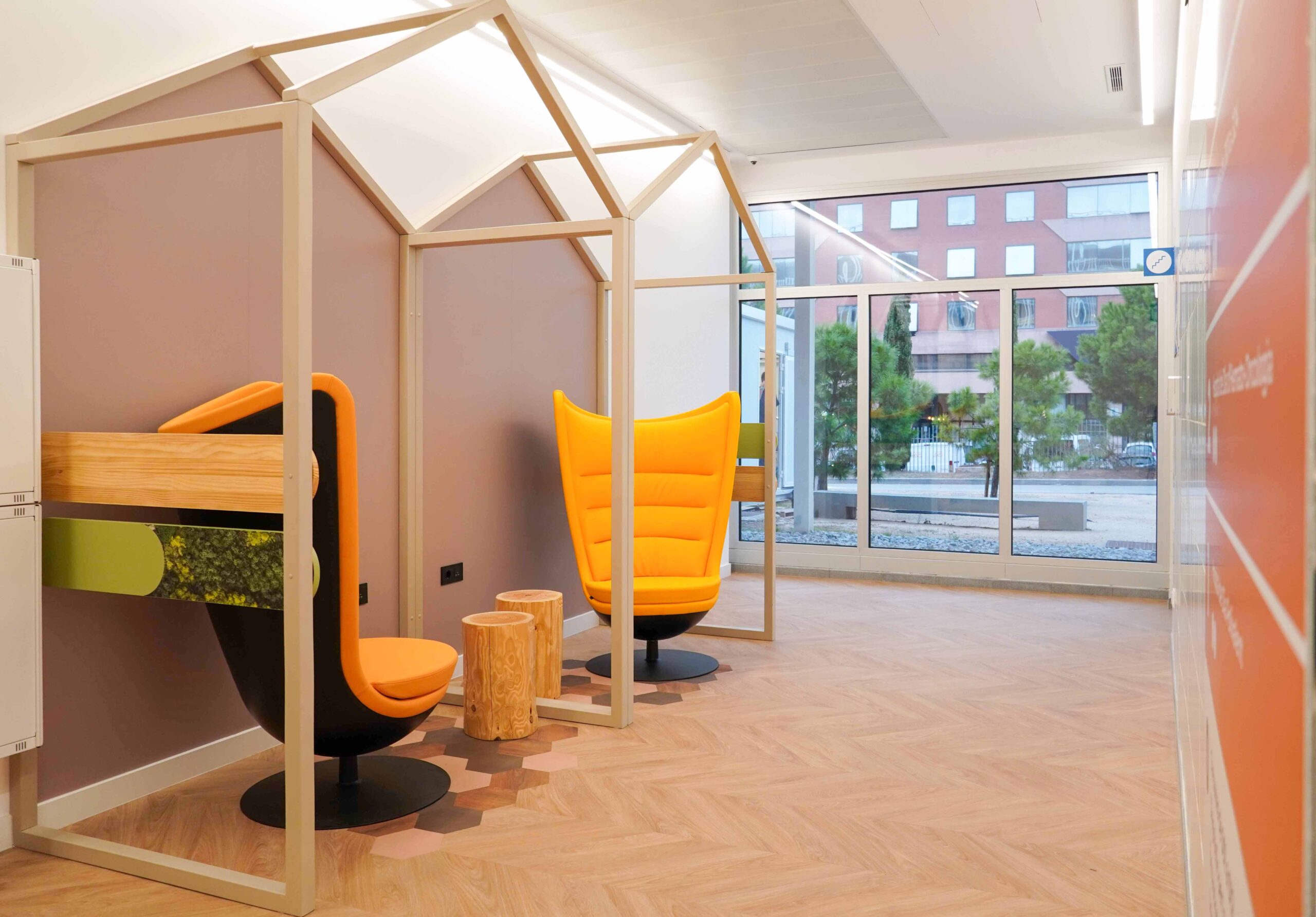 En aquest context, s’han ideat les sales d’espera de les consultes d’Oncologia de l’Edifici B de l’Hospital amb un disseny agradable per acompanyar les persones usuàries i els seus familiars en totes les fases de la malaltia: amb espais d’intimitat però també per fomentar les interrelacions; amb mobiliari còmode, amb espais de lectura i amb zones de treball on poder seguir amb el dia a dia.